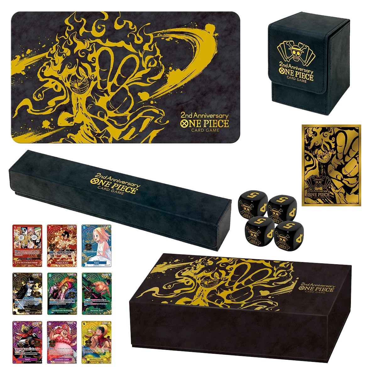 A product has arrived to commemorate the 2nd Anniversary of the Japanese version of the ONE PIECE Card Game! Dice and playmat case are new for ONE PIECE CARD GAME! Delight in this collection of uniquely designed supply items, created to commemorate the 2nd anniversary of the Japanese version, although the text on the cards will be presented in English.