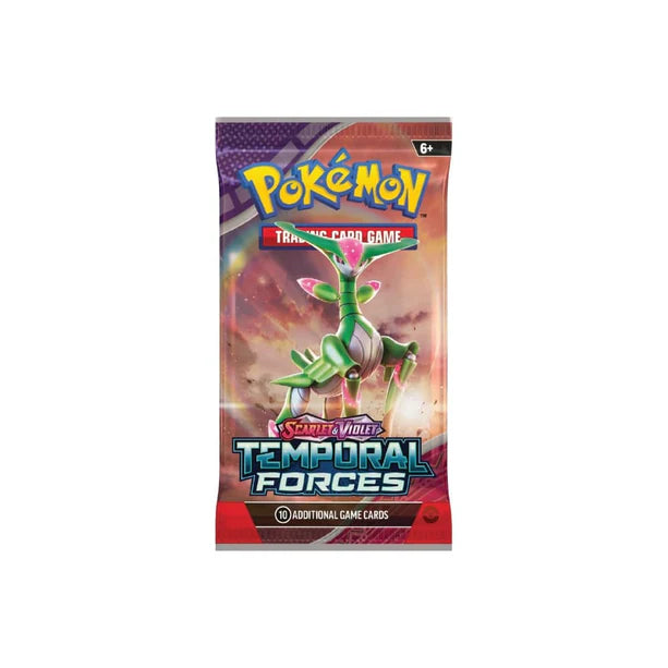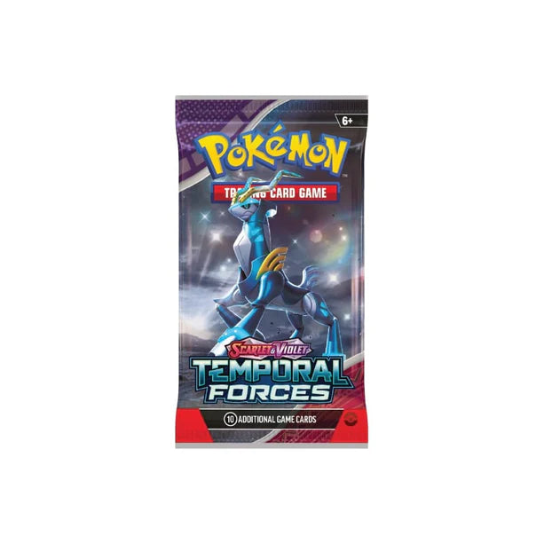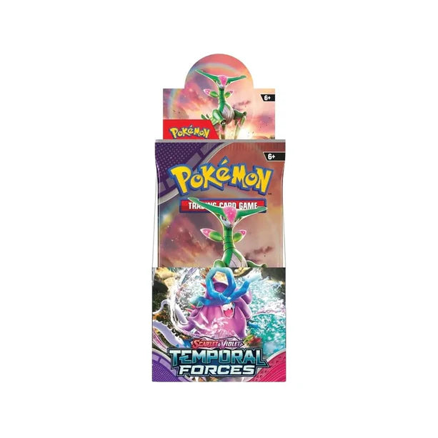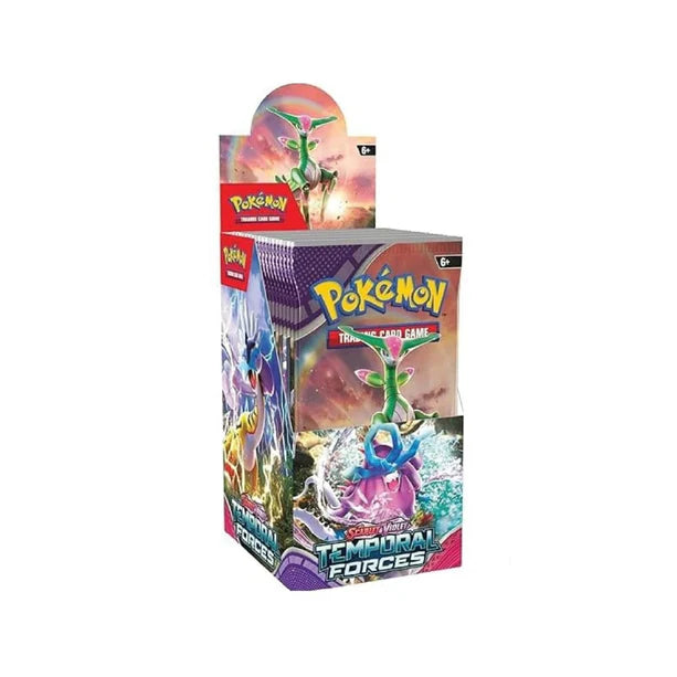 Step into the future of battle with Scarlet & Violet: Temporal Forces! This half booster box contains 18 factory-sealed booster packs, each filled with cards to power up your deck, trade with friends, or add to your collection. Uncover powerful new Pokémon, stunning illustration rares, and exciting Trainer cards as you explore the Temporal Forces expansion.